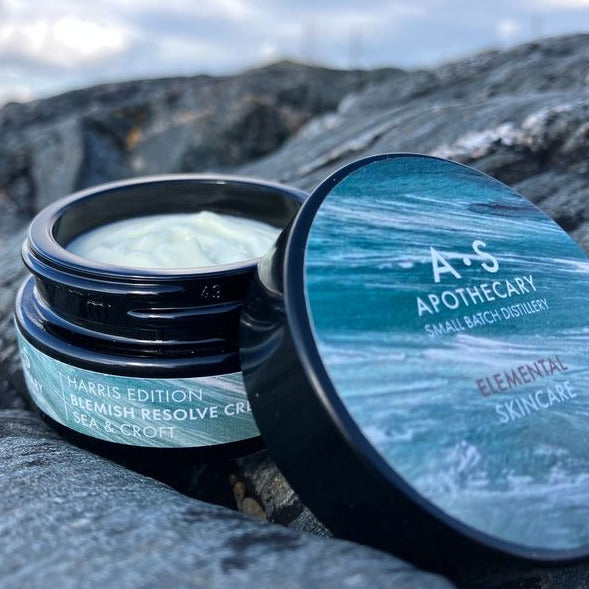 Blemish Resolve is specifically designed to speed up recovery from breakouts, help to prevent others occurring and reduce scarring. In Harris, Sugar Kelp grows out in the deep sea, it has two wonderful properties, it regulates and controls oil production whilst also being profoundly soothing. In combination with water-distilled Witch hazel which reduces inflammation and shrinks pores, chamazulene rich Chamomile, anti-inflammatory Laurel leaf and Galbanum resin which has fantastic anti-microbial properties, Blemish Resolve is a powerfully targeted product. It deals with skin prone to breakouts but at the same time it is gentle, nourishing and balancing the skin.