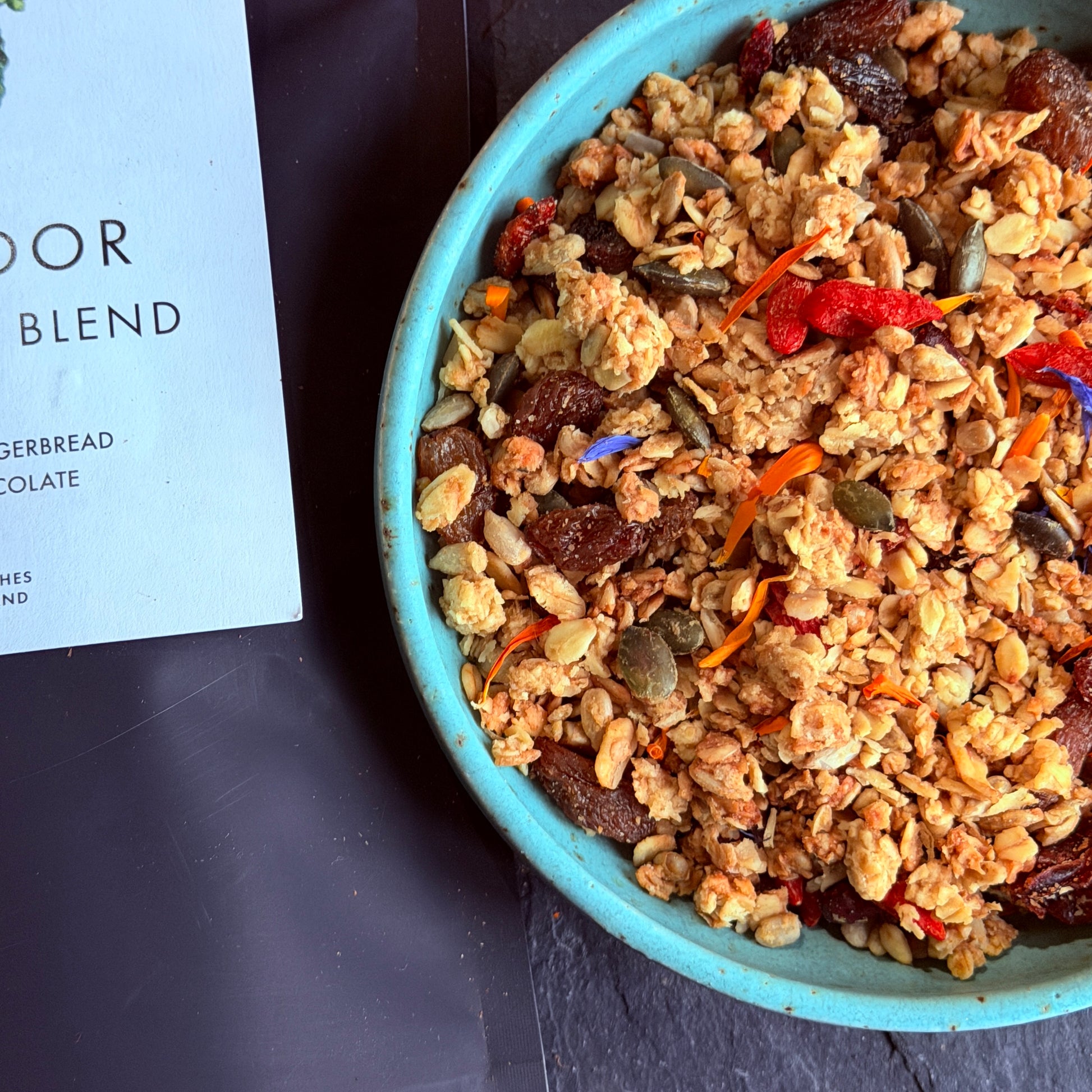 What better way to start (or finish) the day than a speciality coffee and a bowl of Granola served in the most lovely little bowl and cup. The ceramics are made by our friends at Skio in Skye, we make the Wildflower Granola and it's delicious and of course we roast the coffee too. Perfect breakfast hamper.