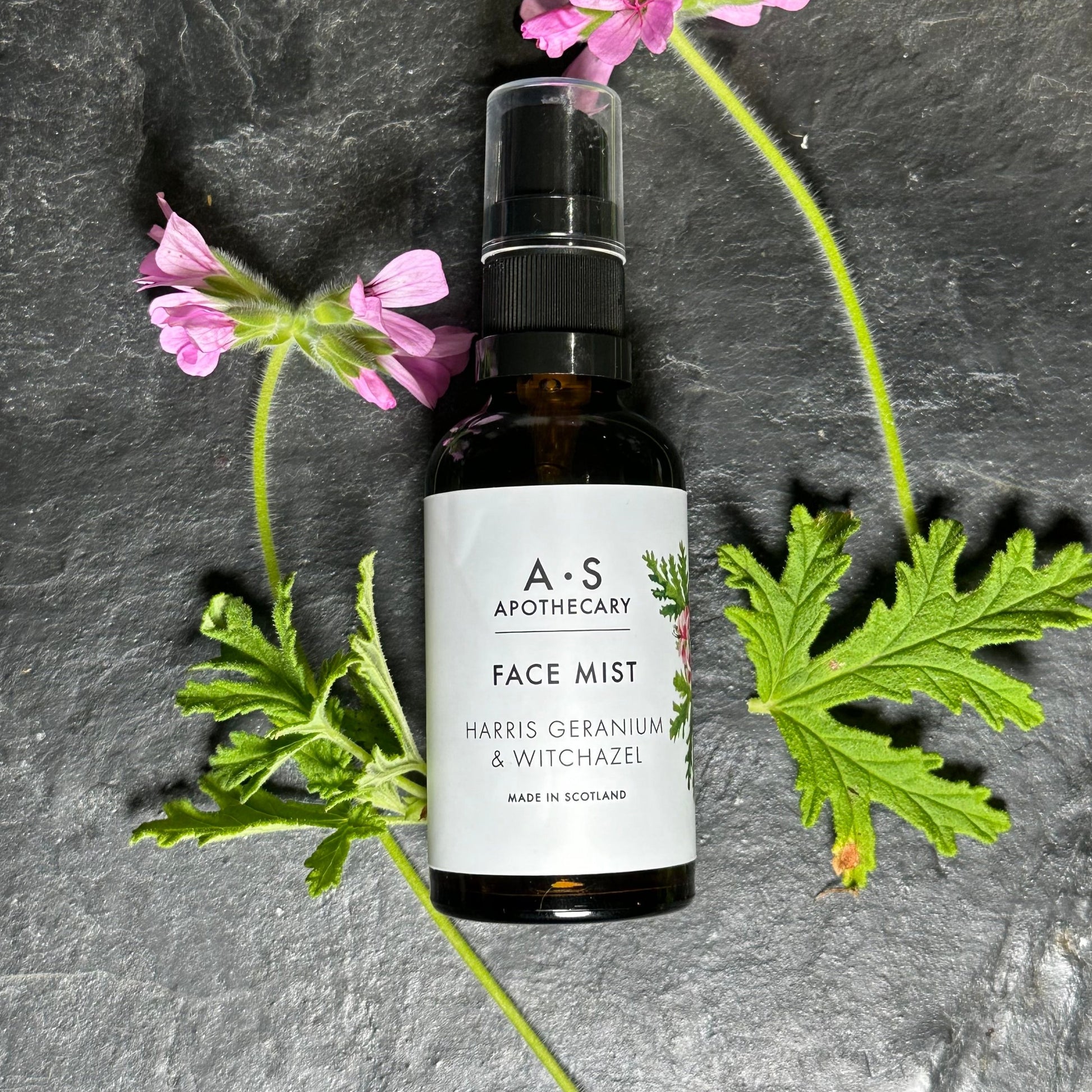 Face Mists are an ideal way of deeply hydrating the skin and offering specific skin benefits. Rose Geranium has been used to balance the hormones, clear and soothe the skin for centuries in the Levant. In combination with Witchazel this Mist is ideal for supporting skin prone to hormonal breakouts and regulating sebum production.