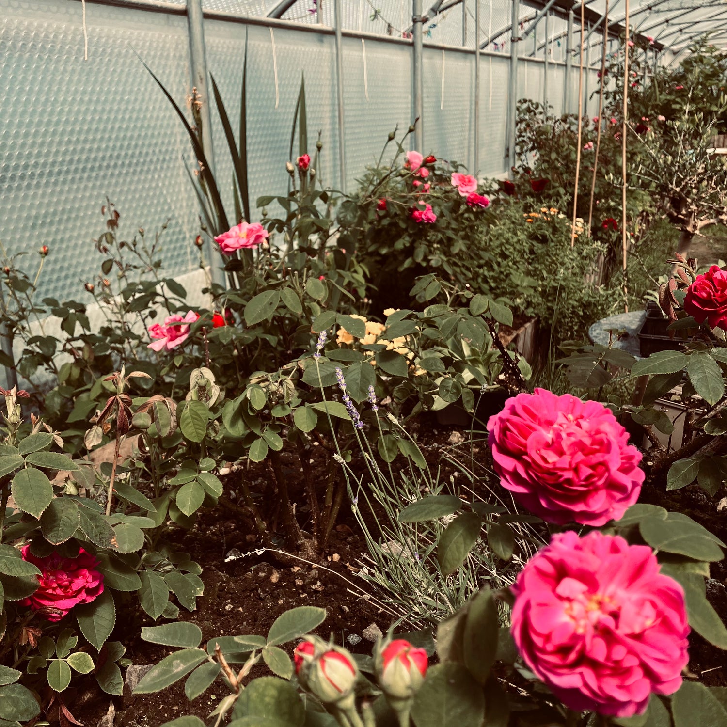 We have over 200 roses on our croft and in our greenhouse, Gertude Jekyll, Munstead Wood, Wild Eve, Rosa Mundi and Gentle Hermione to name just a few of the varieties we grow, supplemented by Rosa rugosa which is prolifically growing throughout Harris.