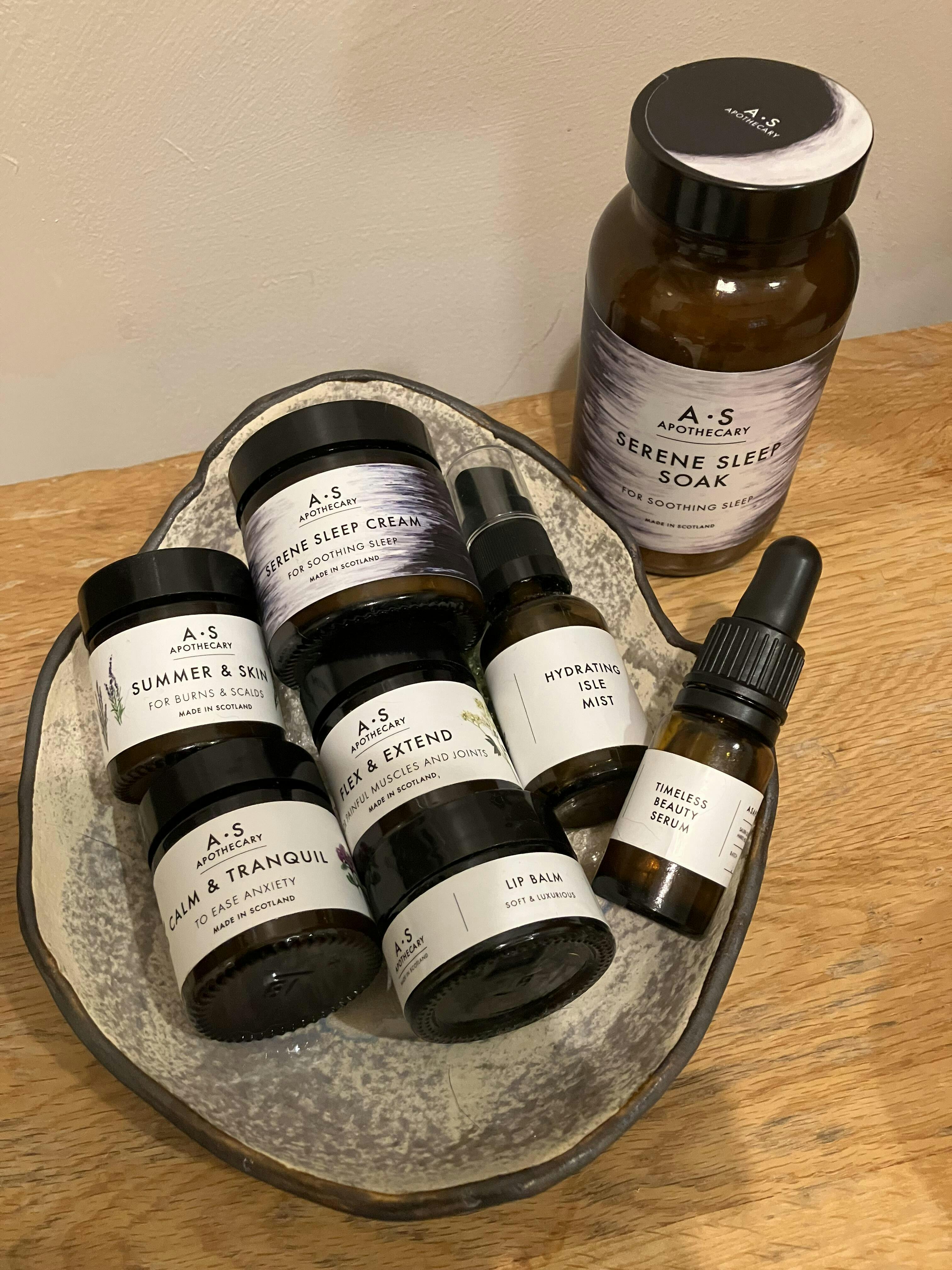 - A mood boosting facial mist from three Harris distillations with plants we grow and forage