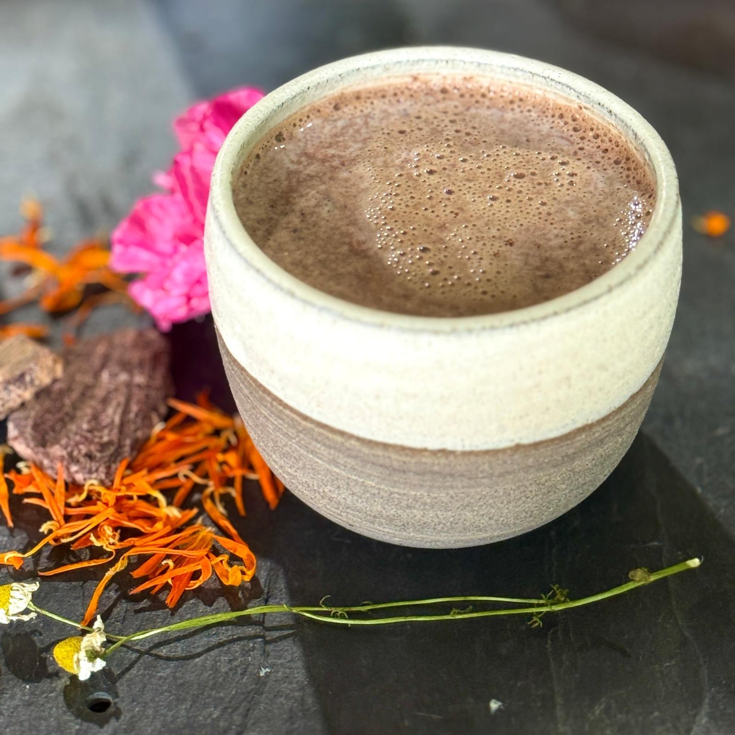 About an hour before bed, put a little over a heaped teaspoon of the Ritual Cacao in a pan (don’t make it in a cup, it’s not as nice) pour over your milk of choice and heat. Whisk the Cacao until dissolved. Strain if you prefer not to have bits of petals. Pour into a cup, sip slowly and relax.